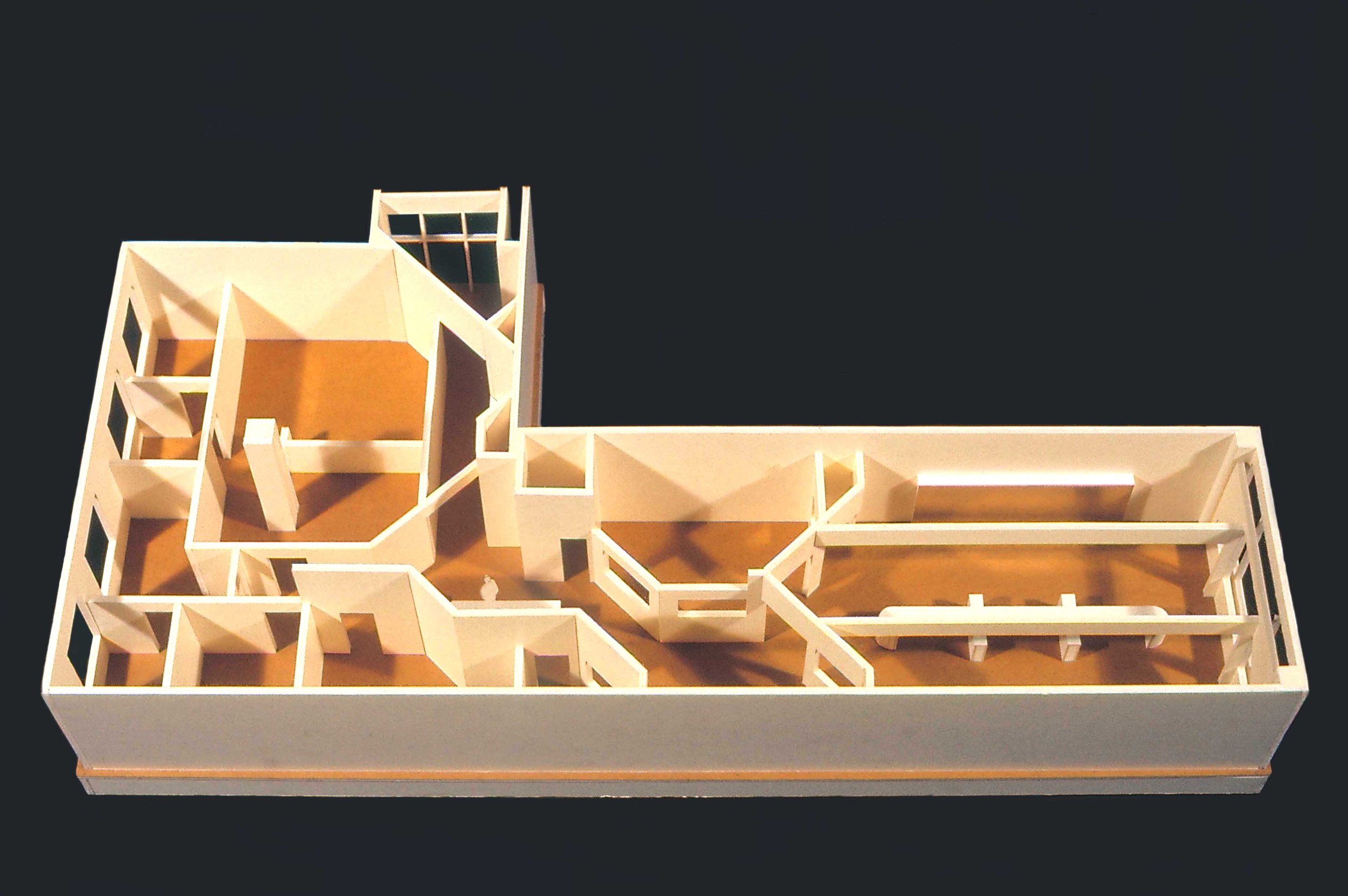 The beauty parlor was designed to fit into an existing "L" shaped space on the second floor of a midtown office building. The layout was dictated by both the existing entry location and the necessary circulation pattern through the various work stations. A sense of spatial expansion was created by cutting large openings into the walls. The central "stage" of the shop, was made to feel busy and full of activity by the numerous mirrors that reflected and re-reflected the customers.