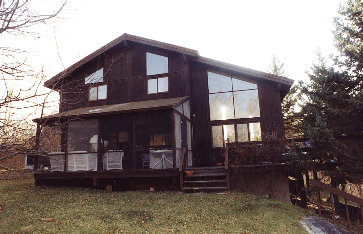 The house looked as if it had been built on a shoestring budget by amateur builders before the energy crisis of the early seventies. The North facing wall of the Living Area had been built with 2x4s and was structurally and thermally unsound (it moved when one leaned on it, and was insulated with fiberglass batts compressed to about 1" thick throughout). To provide structural as well as thermal substance, 2x3 furring was added all around and new "Icynene" foam insulation was sprayed into the deeper cavity.